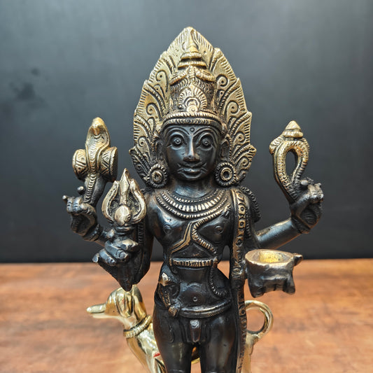Brass Kaal Bhairava Statue With Dog Black Gold Finish 11 ...