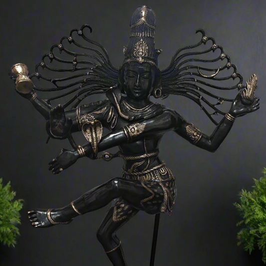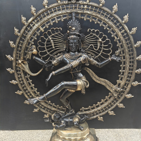 Brass Large Nataraja Statue Dancing Shiva Black Patina Fi...