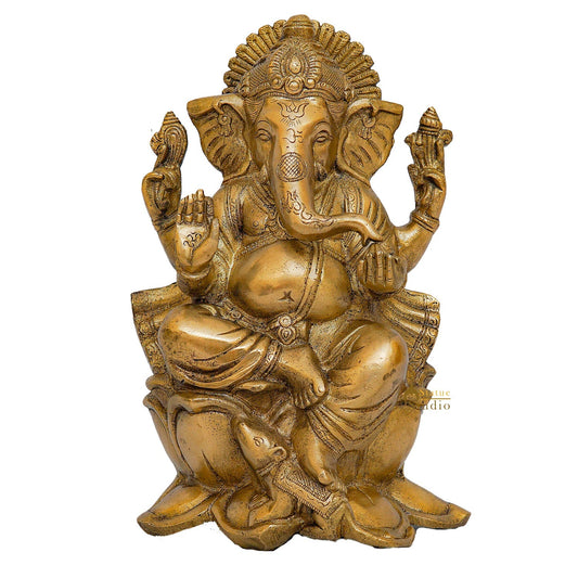Brass Lord Ganesha Statue Golden Finish 11 Inch