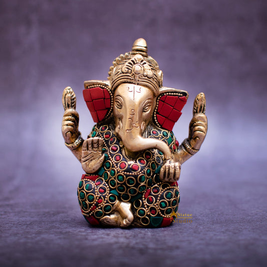 Brass Lord Ganapati Idol Stone Work For Home Decor Giftin...
