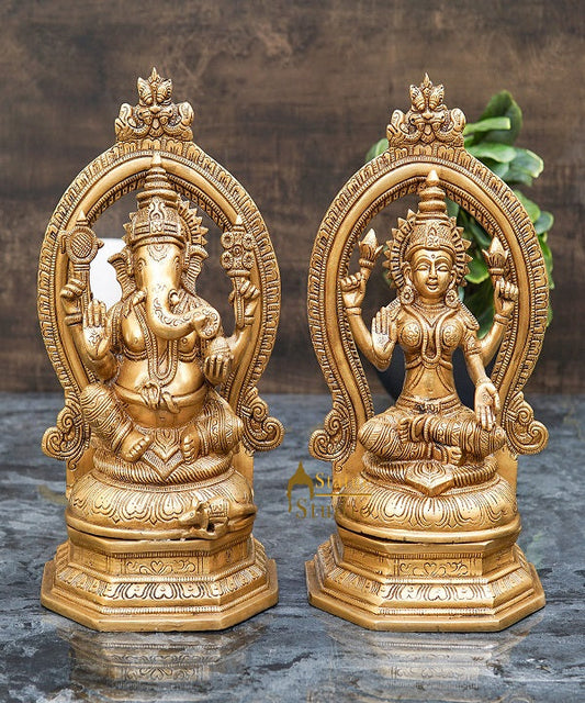 Brass Antique Ganesha Lakshmi Idol Set (Stone Work) 7"