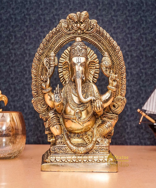 Brass Antique Ganpati Idol Ganesha Statue For Home Office...