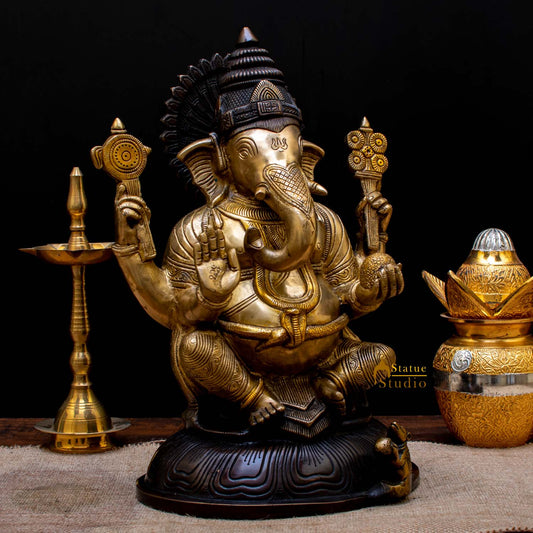 Brass South Indian Style Ganesha Idol For Home Mandir Dec...