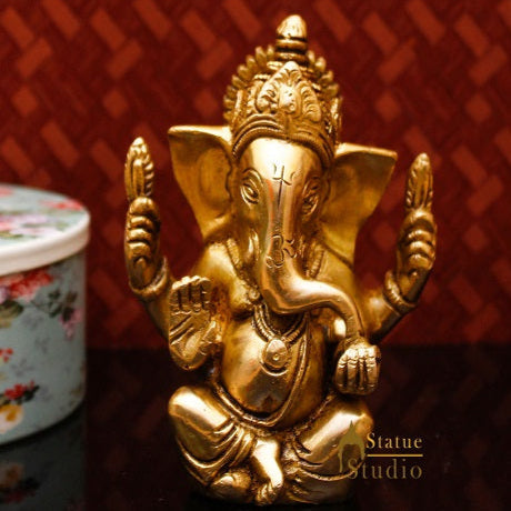 Brass Small Lucky Sitting Ganesha Idol Corporate Diwali G...