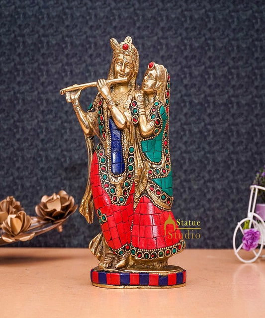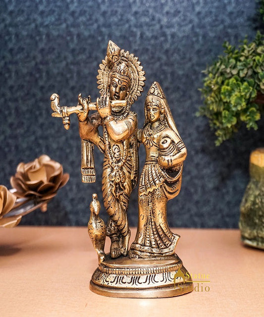 Brass Antique Lord Radha Idol Showpiece For Home Pooja Dé...