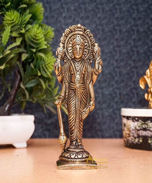 Brass Antique Lord Vishnu Idol For Pooja Home Temple Déco...