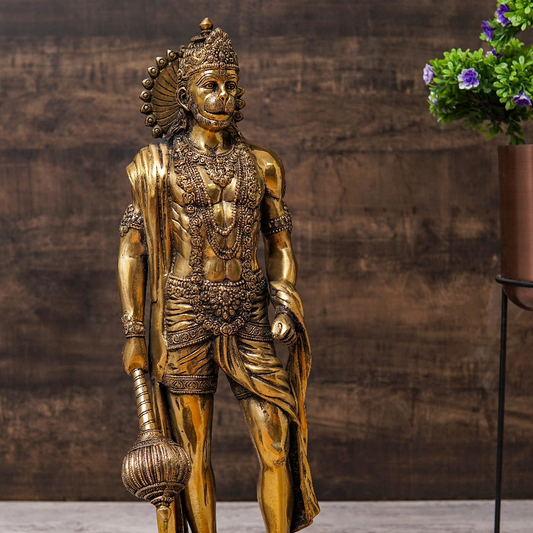 Brass Antique Mahabali Standing Hanuman Idol Home Religio...