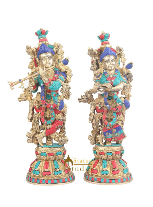 Large Size Brass Hindu Deity Radha Krishna Idol Home Déco...