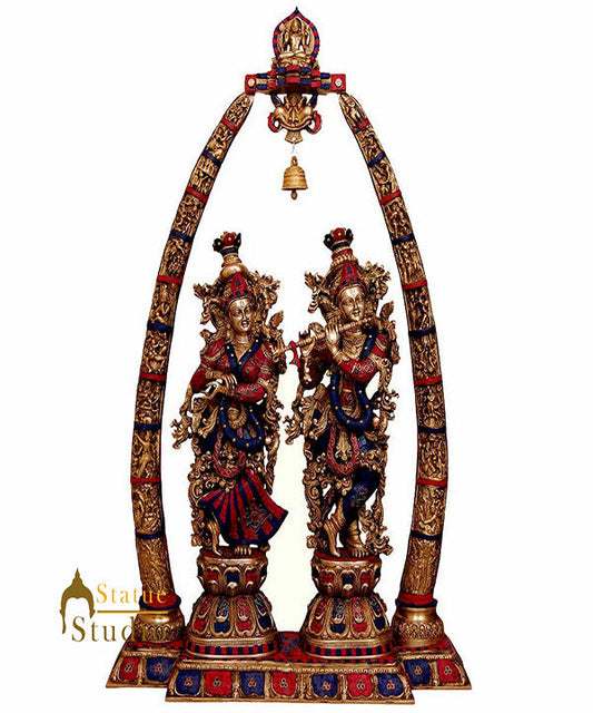 Large Size Brass Tusk Set Radha Krishna Temple Statue Big...