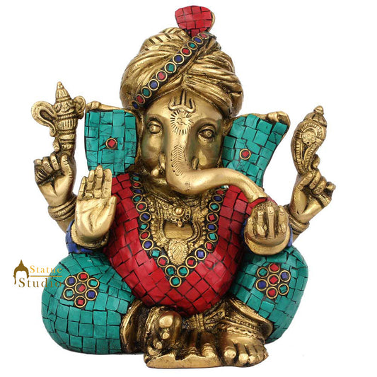 Lucky Gift Ganpati Vinayak Turban Ganesha Idol Décor Inla...