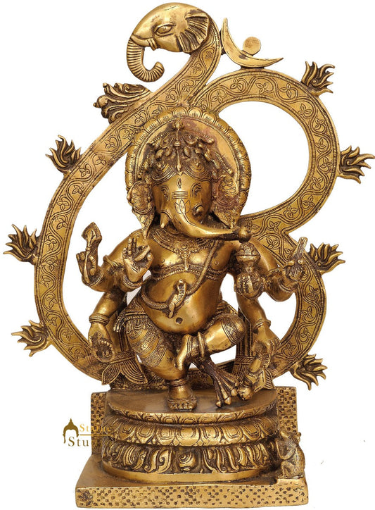 Om Aum Signage Ganesha Statue Base Brass Bronze Metal Six...