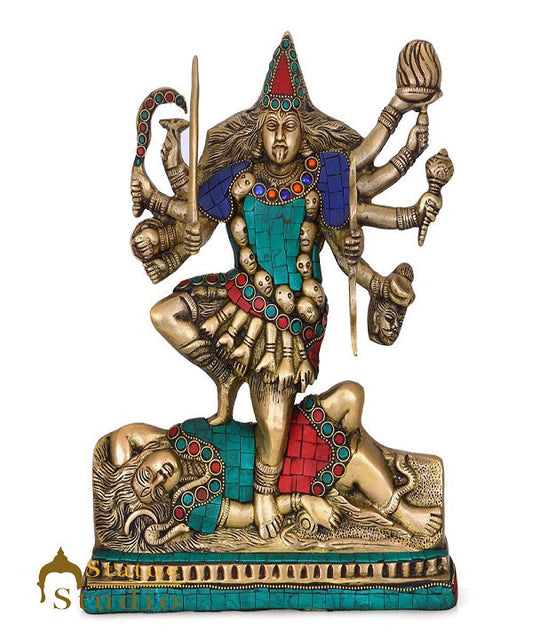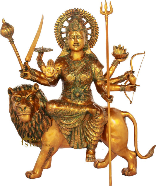 Brass Ashtabhuja Durga Idol Large Sherawali Home Temple D...