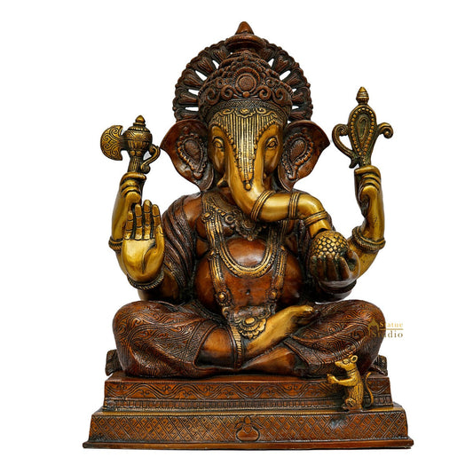 Brass Big Ganesha Statue Antique Finish For Home Office L...