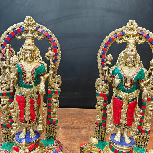Brass Antique Vishnu Lakshmi Large Idol For Pooja Home Te...