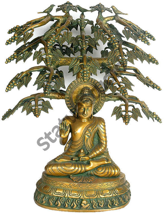 Vintage Buddhism Boddhisatva Tree with Sitting Buddha Sta...