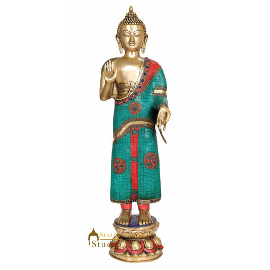 Vintage Large Size Standing Buddha Turquoise Coral Inlay ...