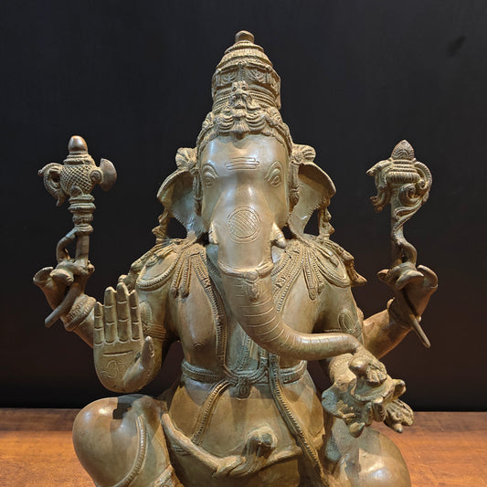 Vintage Brass Large Ganesha Statue Antique Chola Finish 3...