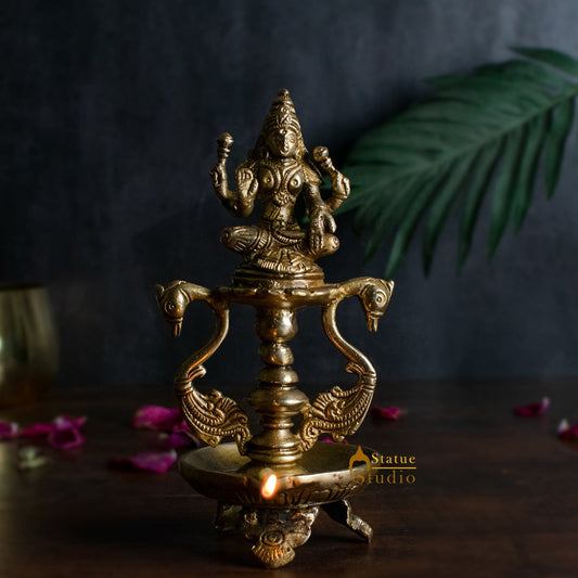 • Brass Standing Laxmi Idol 9.5" for Home Decor by StatueStudio
