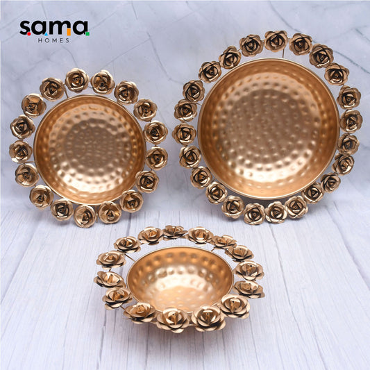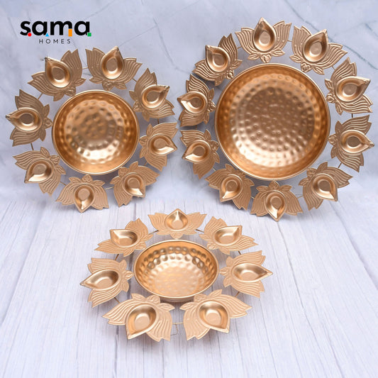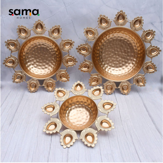 Exklusives Lotus Diya Urli 3er-Set mit Teelichthalter für...