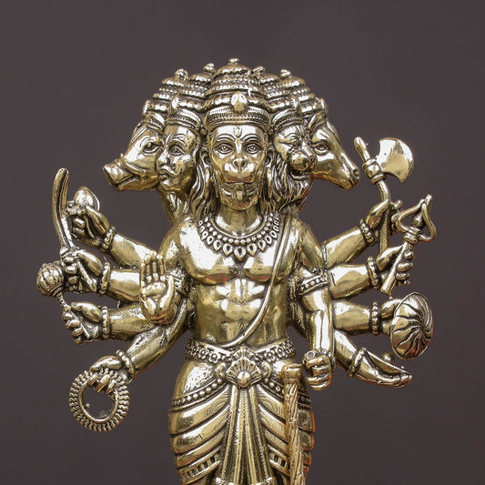 Brass Superfine Standing Panchmukhi Hanuman Idol 4.7 Inches
