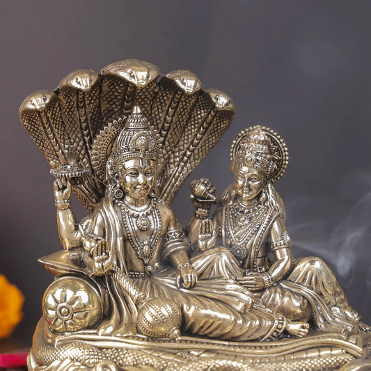 Brass Superfine Vishnu Lakshmi Idol Under Serpent 5 Inch