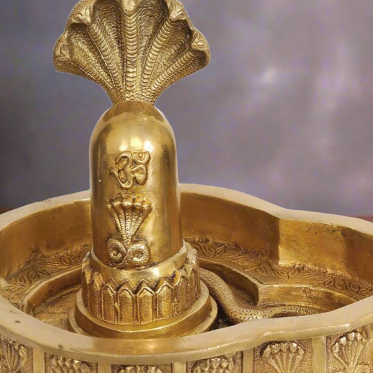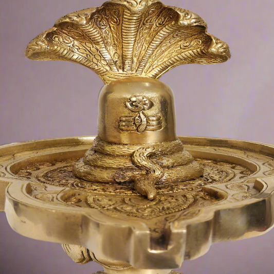Shiva Lingam with Five-Hooded Snake Crowning Religious Dé...