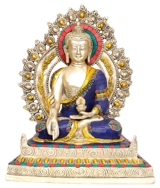 Tibet Buddhist Gautam Buddha Inlay Work Statue Décor Gift...