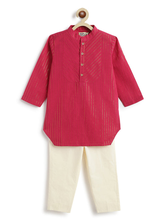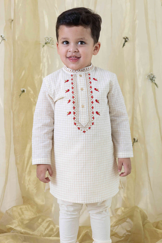 -99% OFFBoys Red Embroidered Buti Dhoti Set