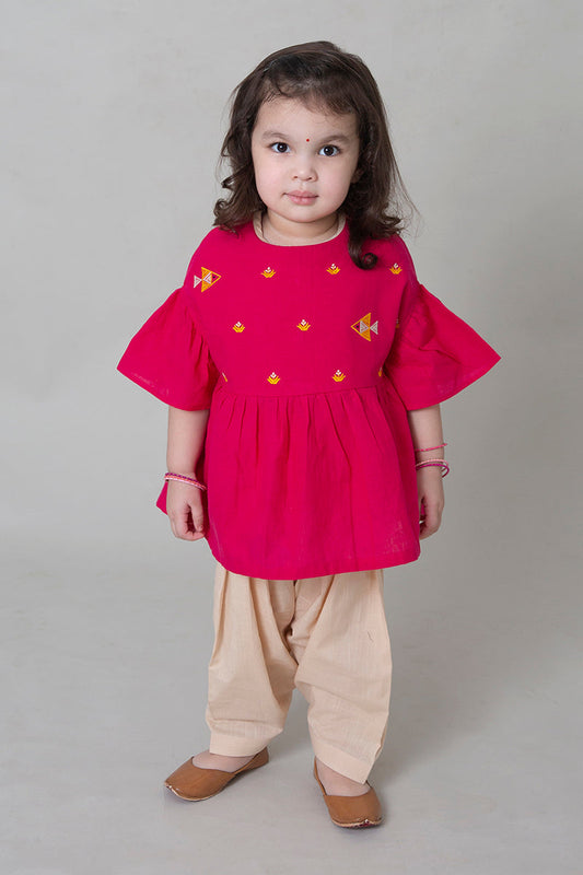 -99% OFFGirls Pink Phulkari Fish Top Set