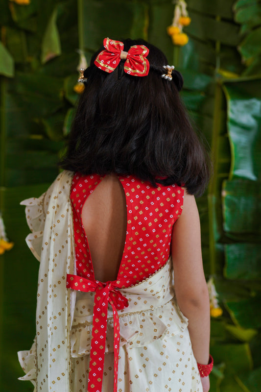 Girls Ruffle Saree-Cream