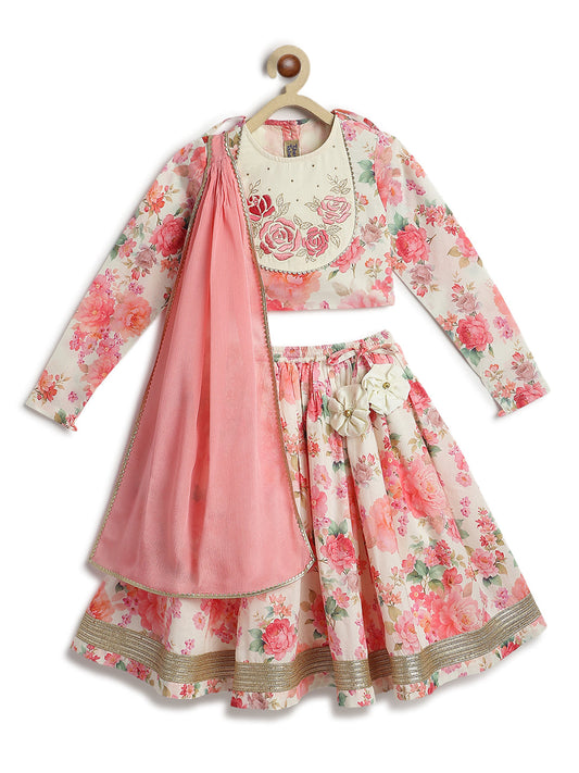 Girls Pink Printed Bandhani Lehenga Set