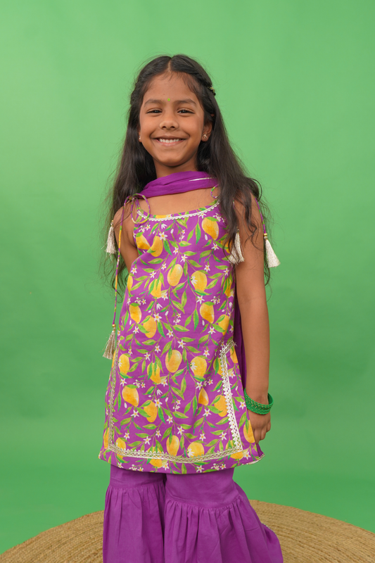 Girls Straight Strappy Sharara Set Printed Mango - Purple