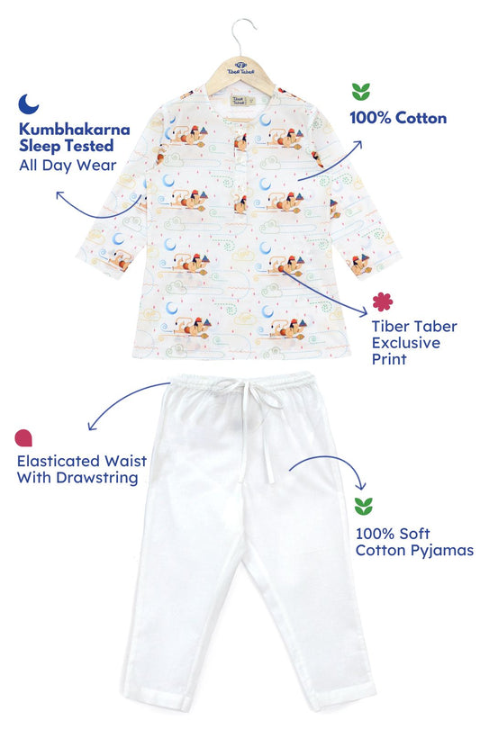 Hanuman Blessing Kurta Pyjama Set - White