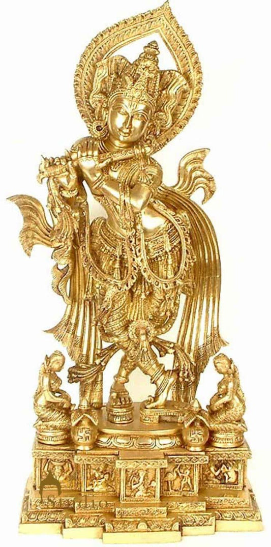 Large Size Indian Brass Hindu God Murli Manohar Lord Kris...